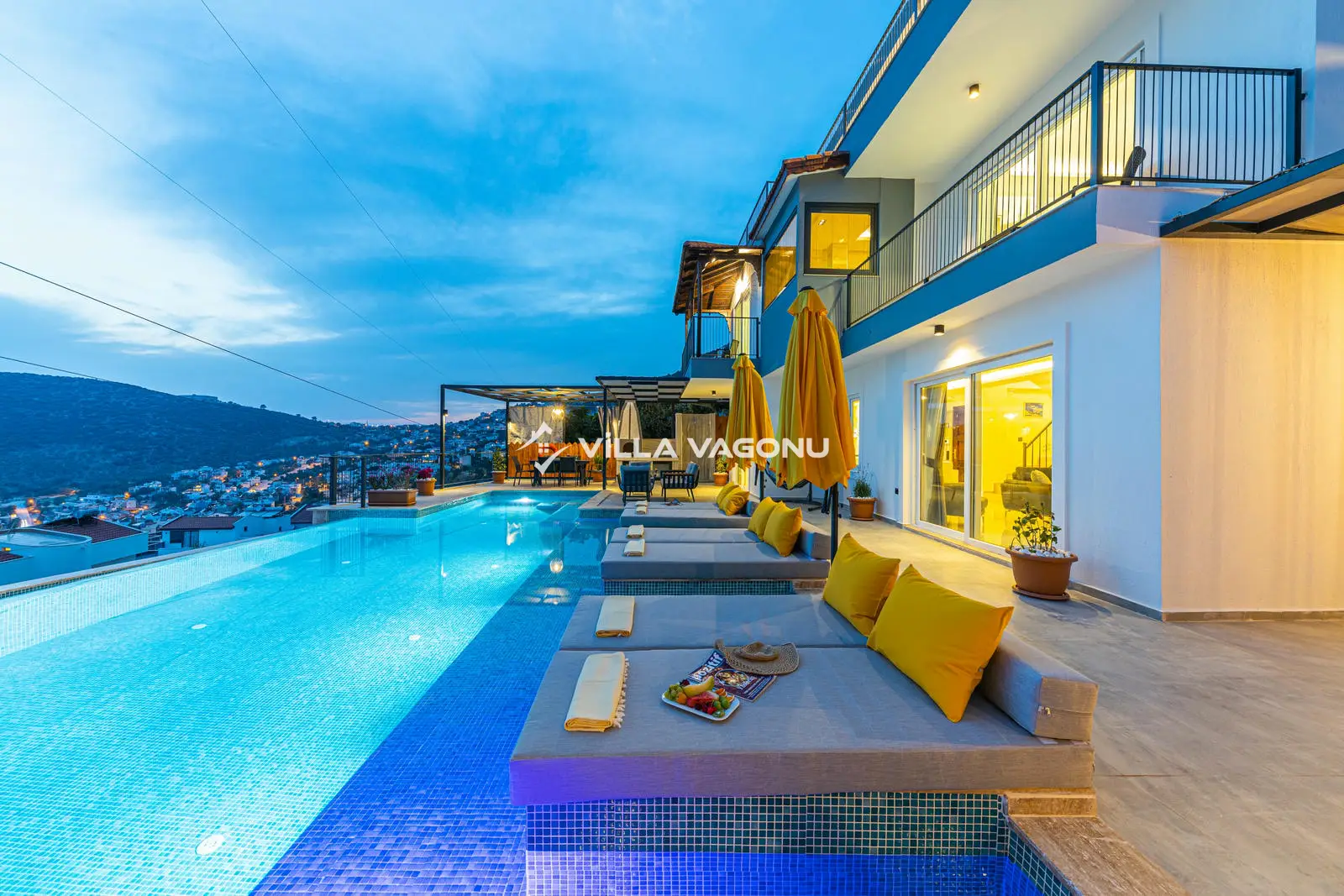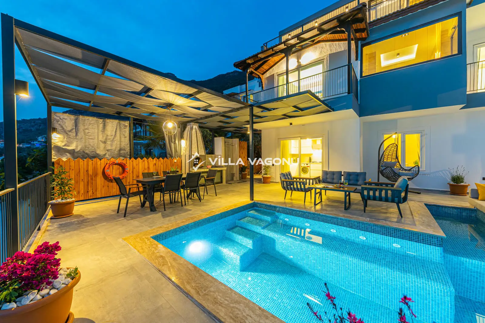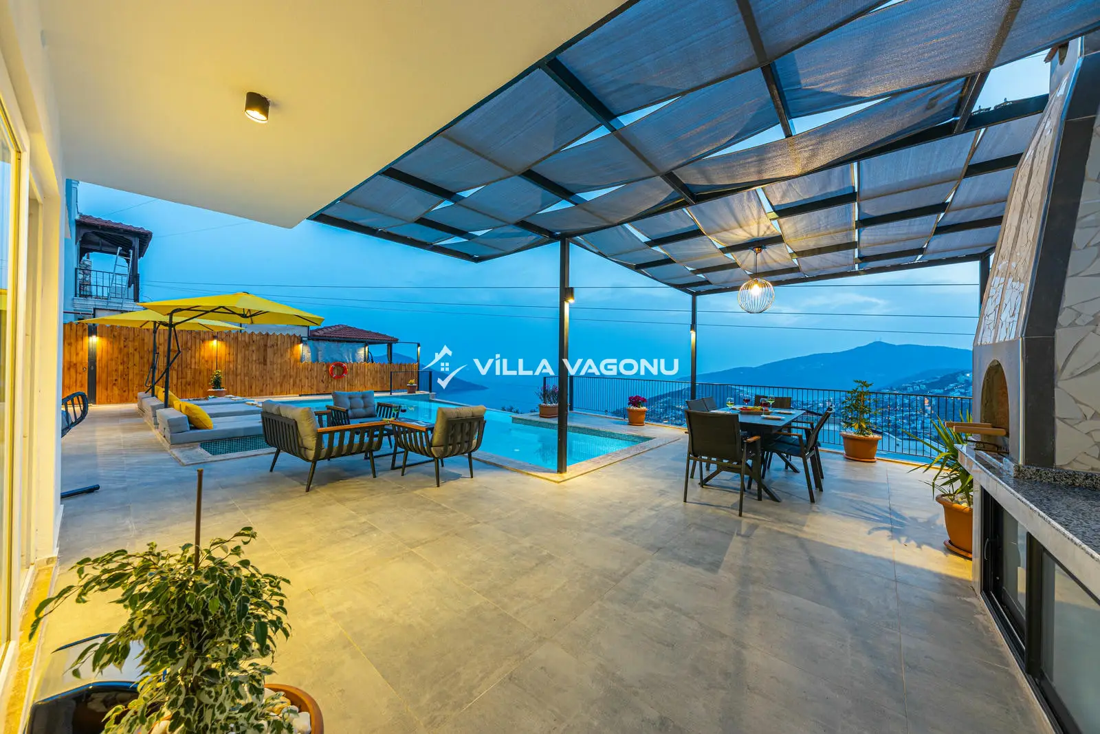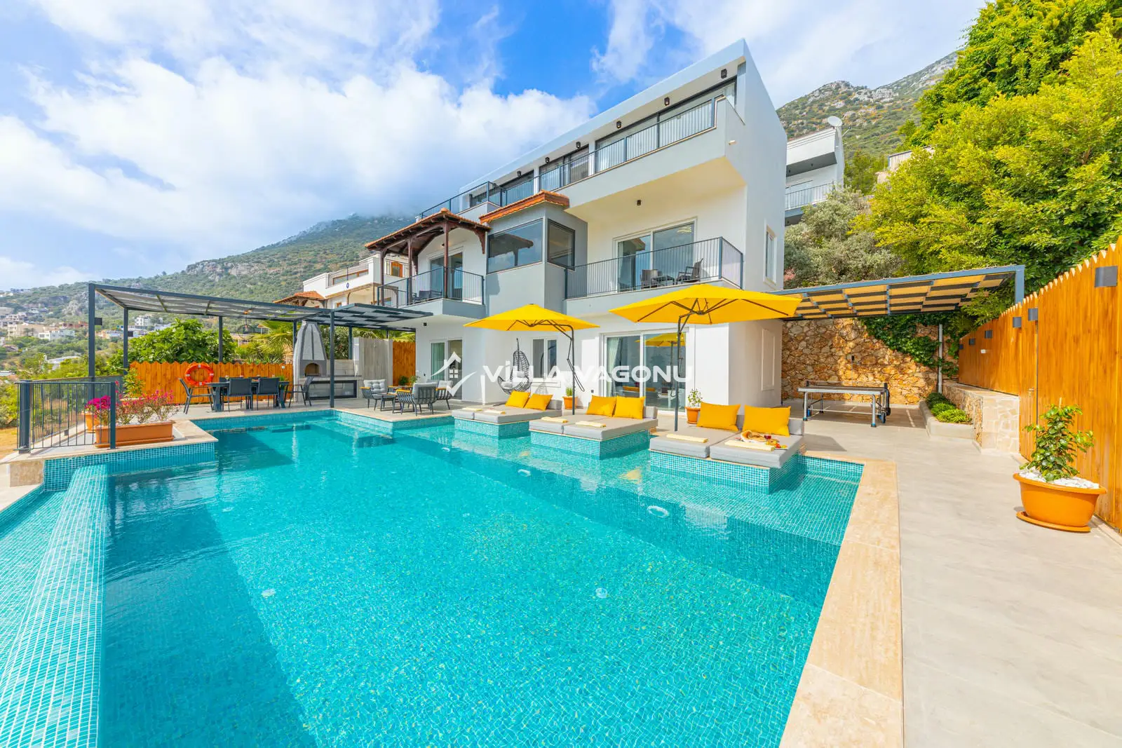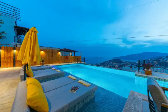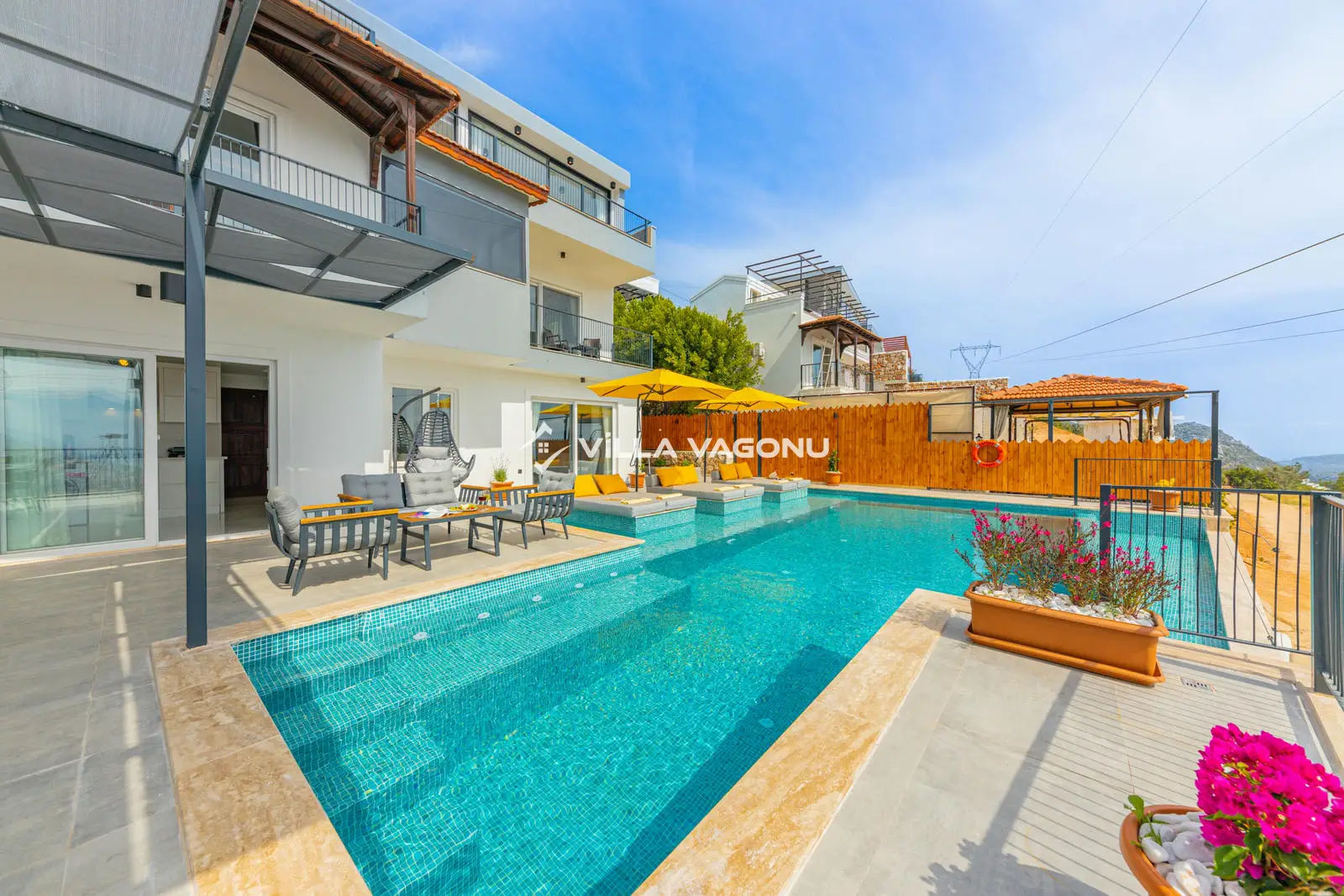 Kalkan Kızıltaş mevkiinde yer alan muhteşem deniz manzaralı villa, sizlere huzurlu bir konaklama deneyimi sunuyor. 3 yatak odasıyla 6 kişilik konaklama kapasitesine sahip olan villamız, geniş aileler için ideal bir tercihtir. Ferah iç mekanları ve zarif tasarımı ile göz dolduran villa, doğa manzarasına hakimdir.
