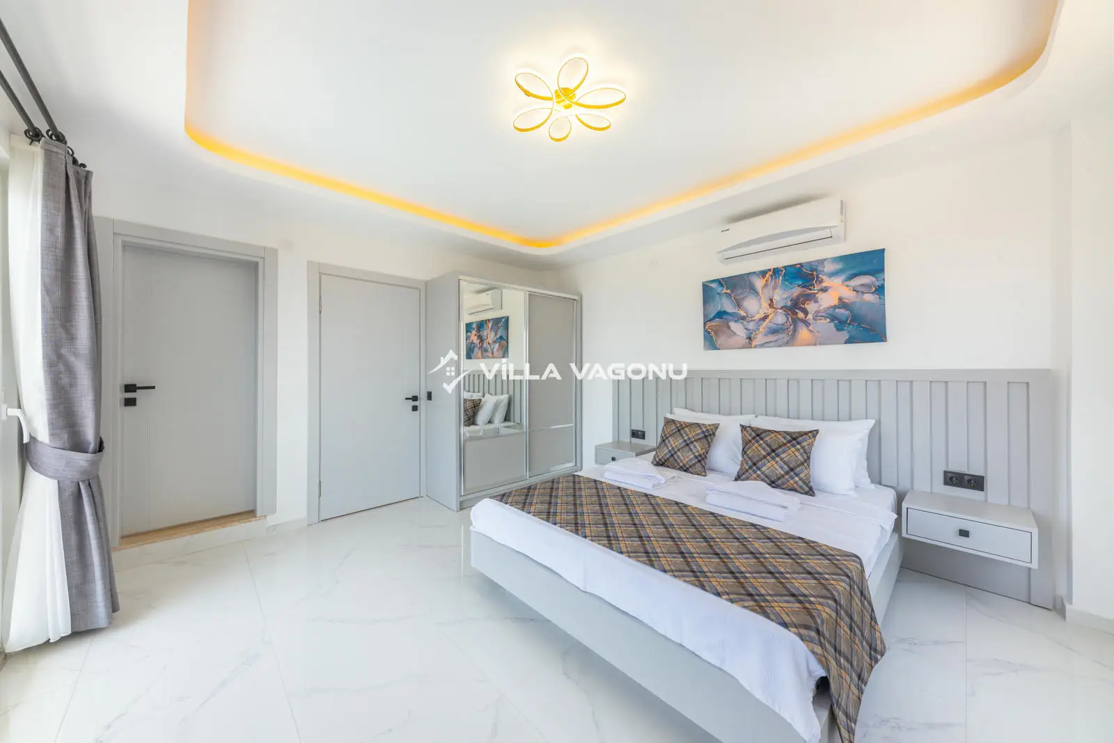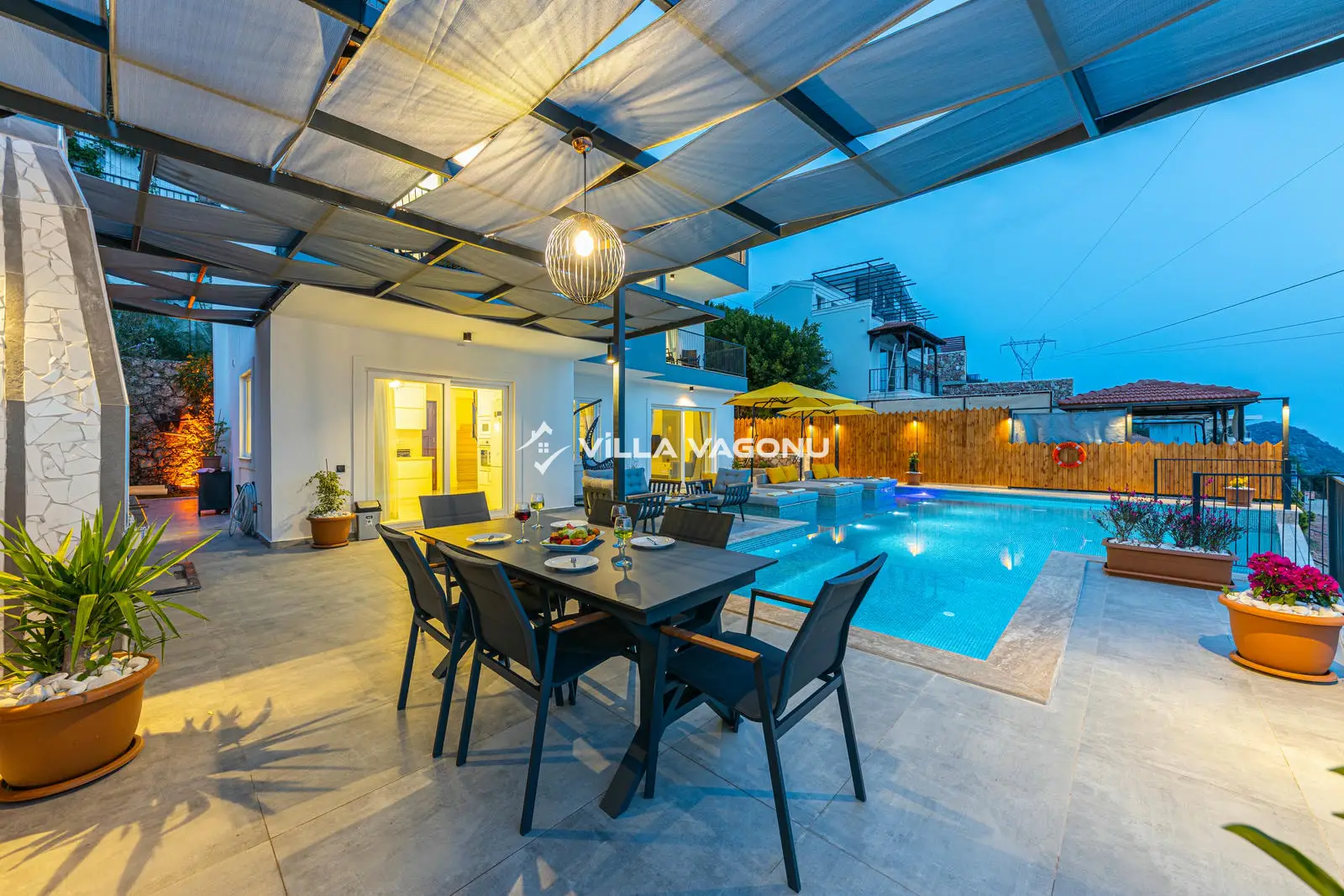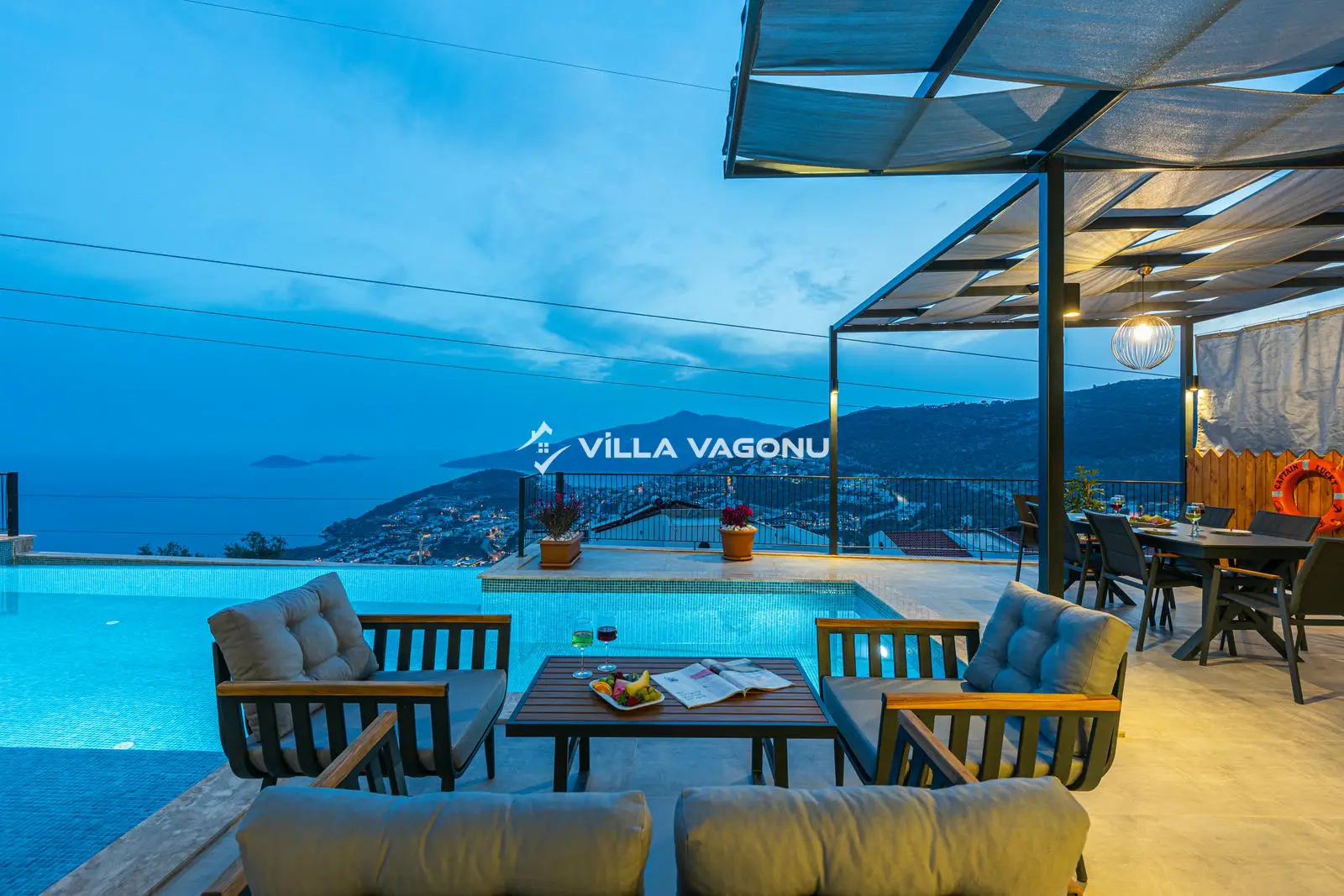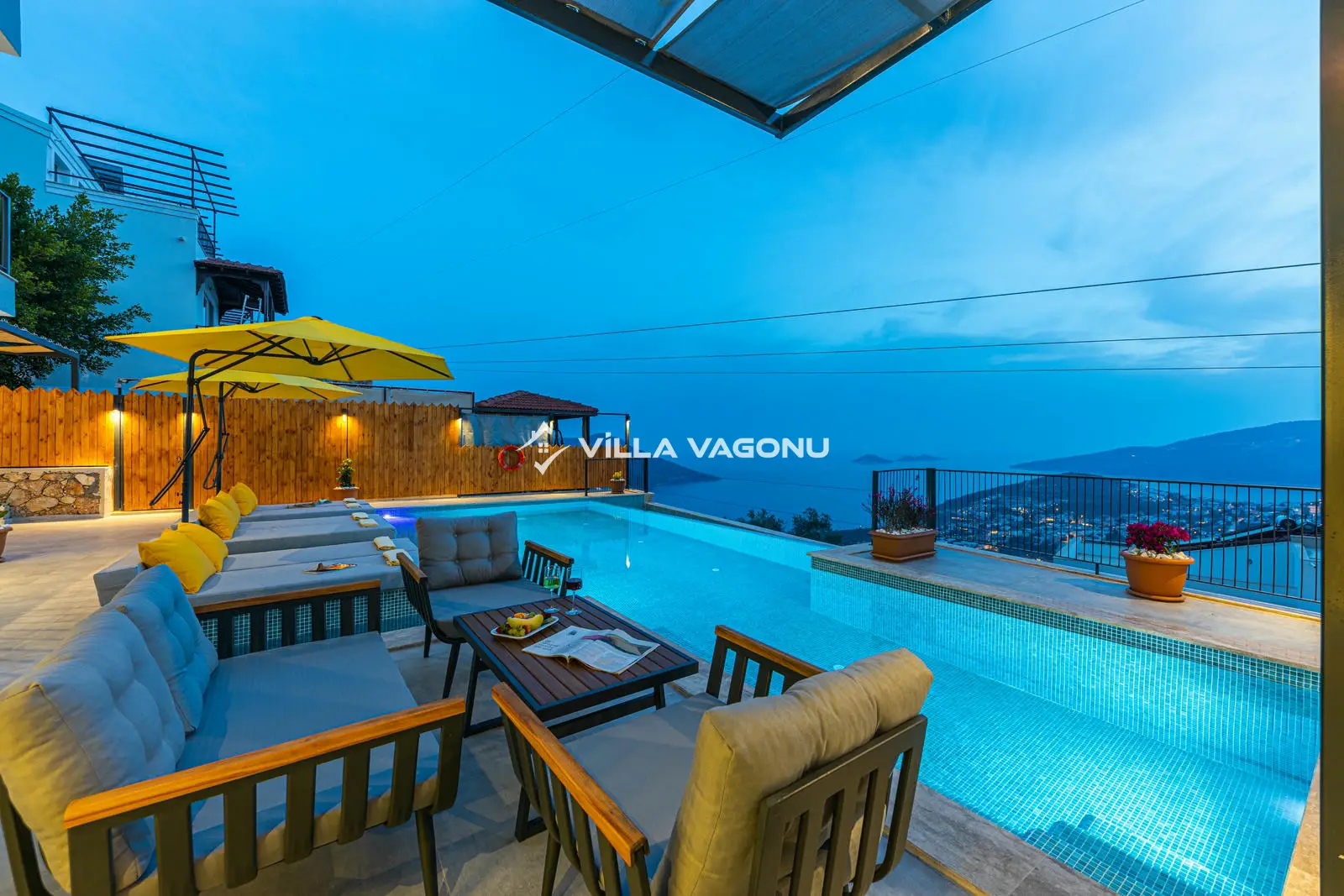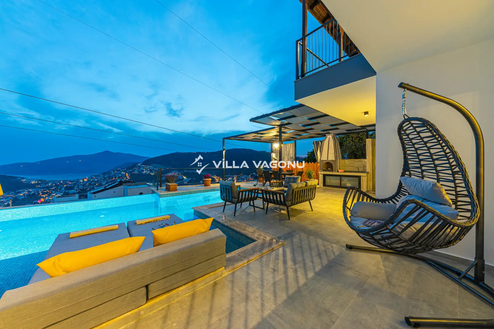 Kalkan Kızıltaş mevkiinde yer alan muhteşem deniz manzaralı villa, sizlere huzurlu bir konaklama deneyimi sunuyor. 3 yatak odasıyla 6 kişilik konaklama kapasitesine sahip olan villamız, geniş aileler için ideal bir tercihtir. Ferah iç mekanları ve zarif tasarımı ile göz dolduran villa, doğa manzarasına hakimdir.