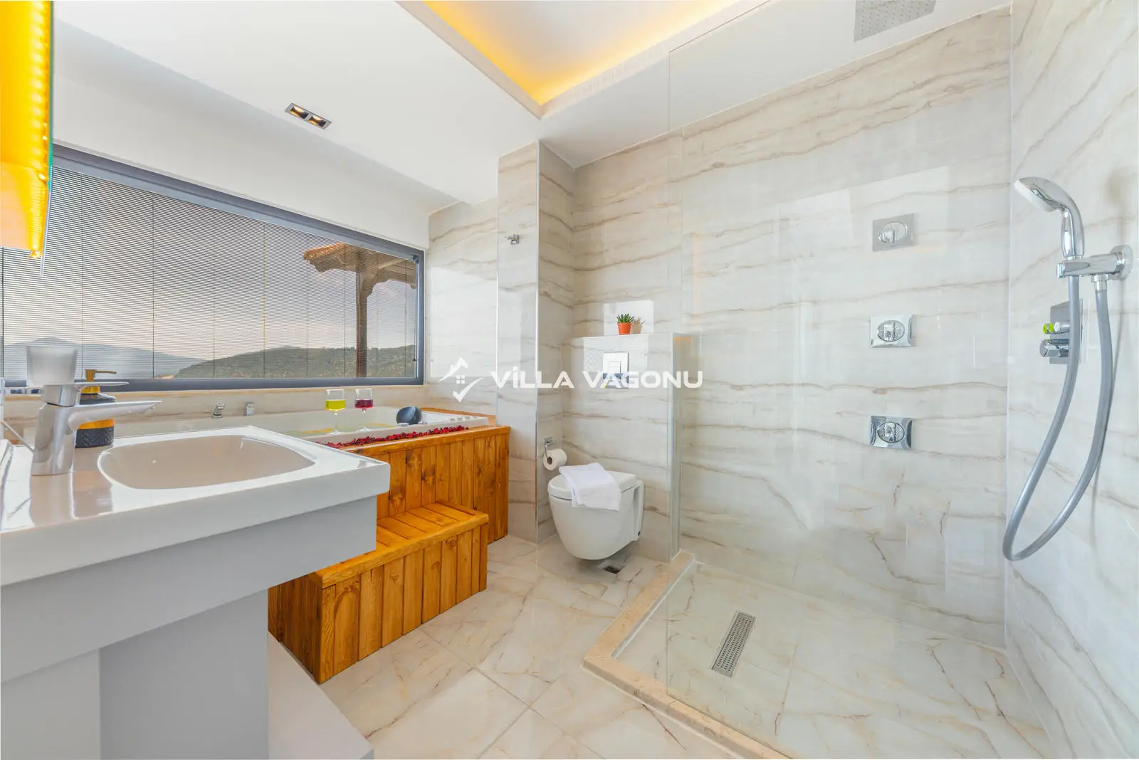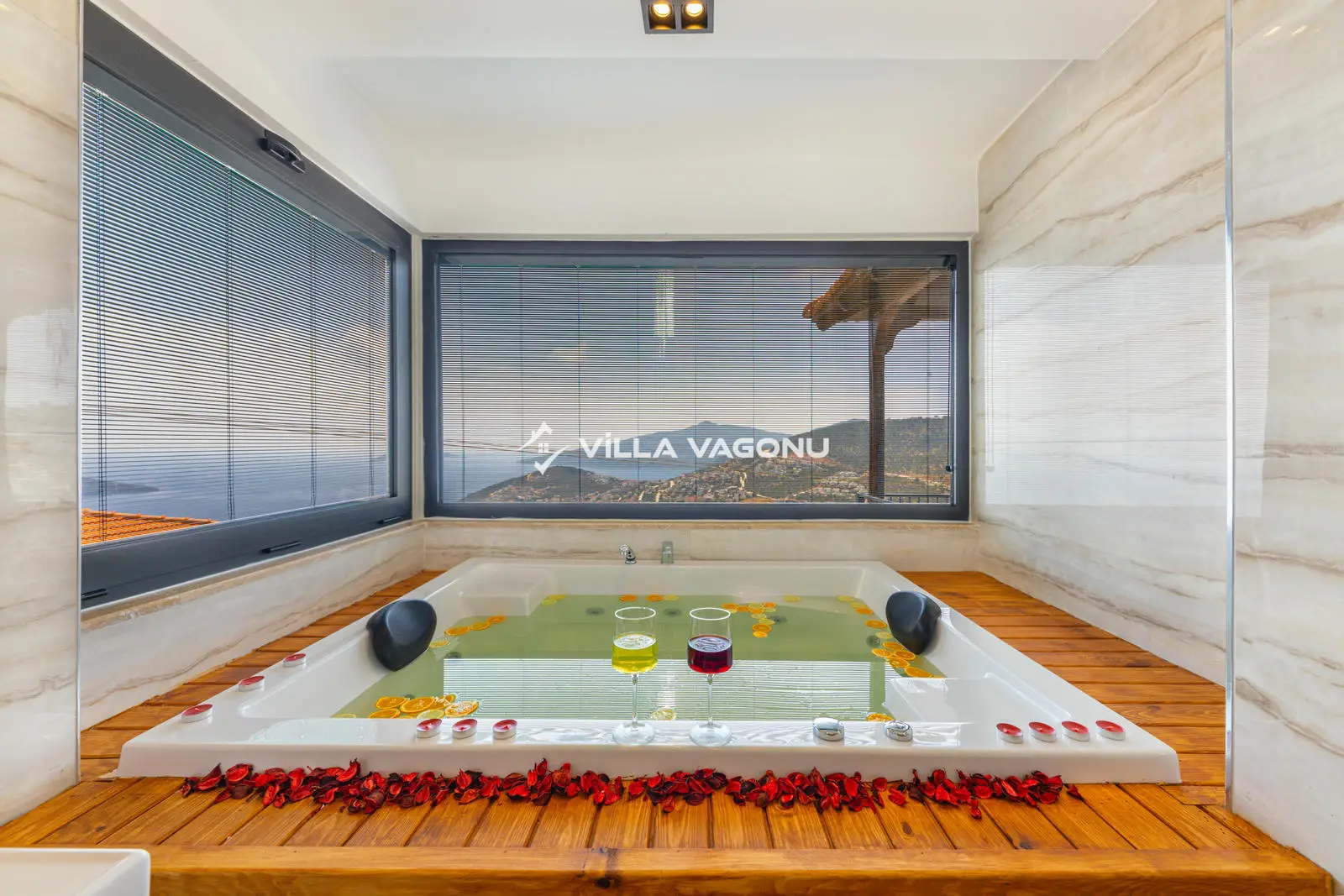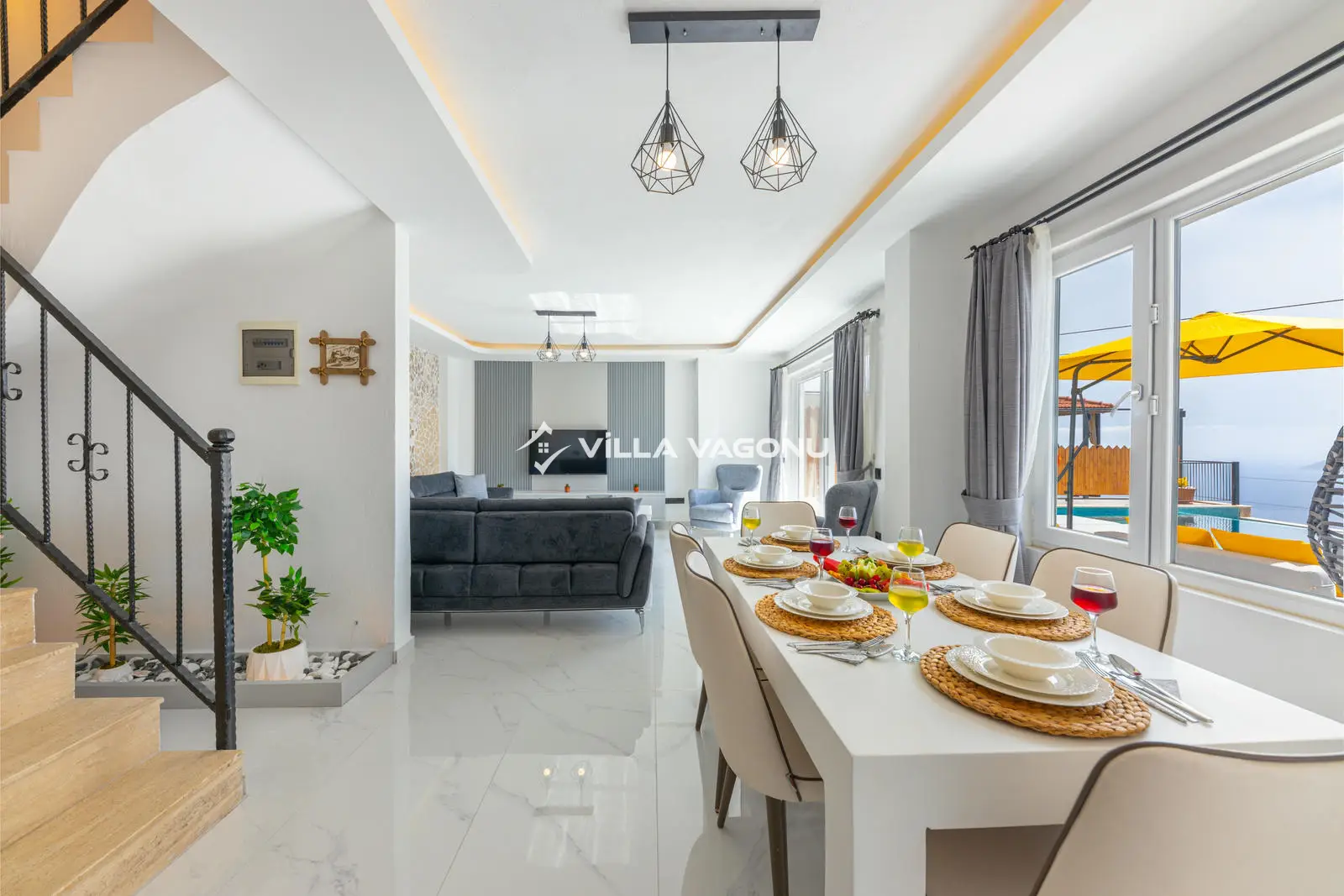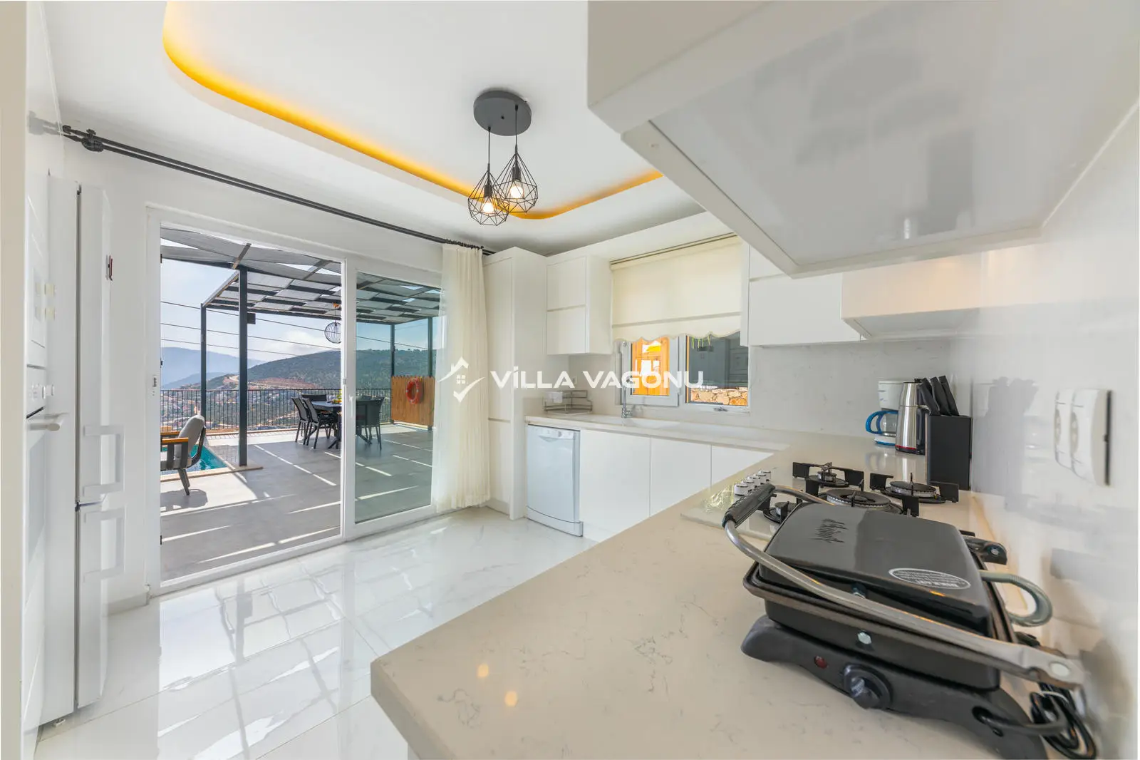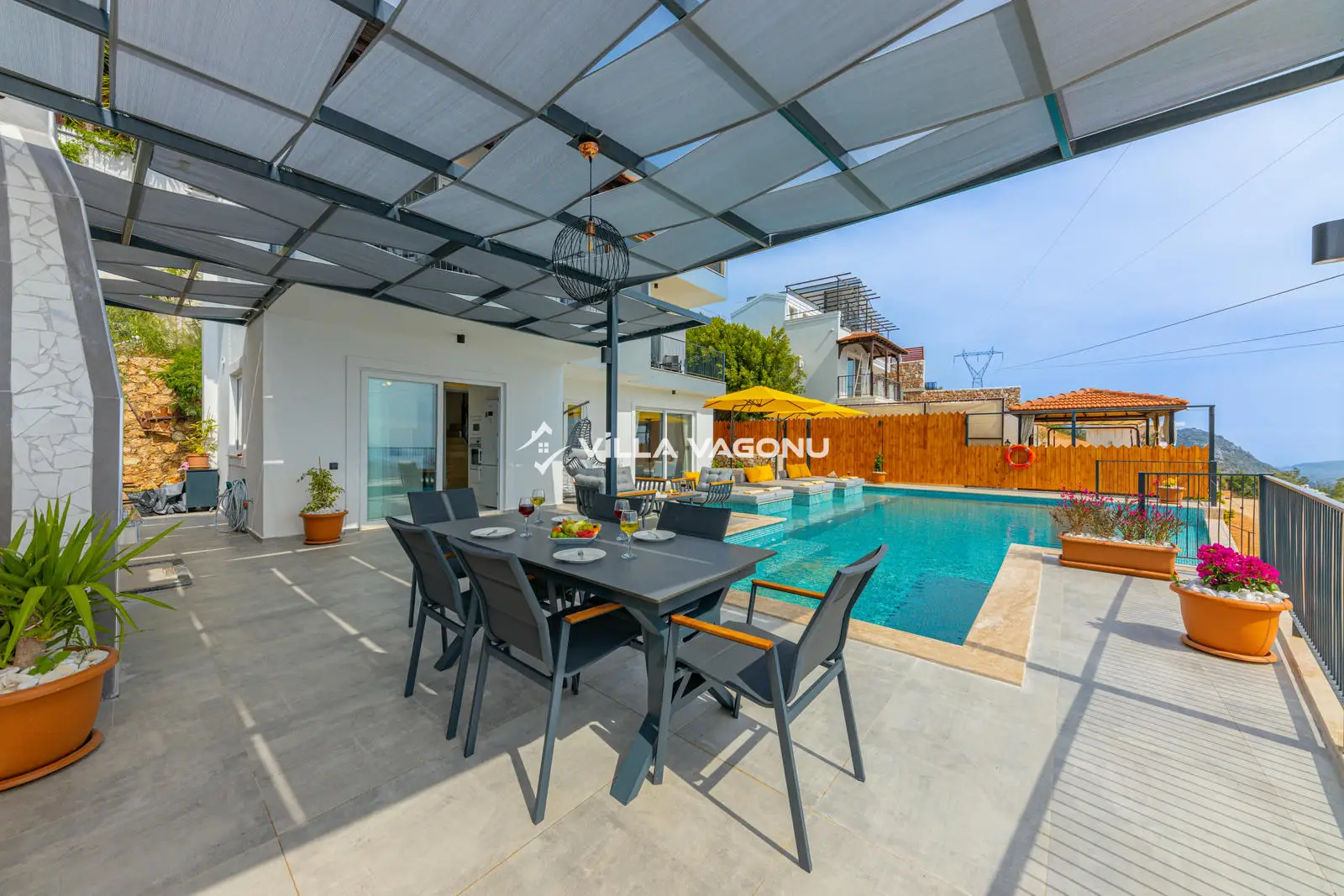 Kalkan Kızıltaş mevkiinde yer alan muhteşem deniz manzaralı villa, sizlere huzurlu bir konaklama deneyimi sunuyor. 3 yatak odasıyla 6 kişilik konaklama kapasitesine sahip olan villamız, geniş aileler için ideal bir tercihtir. Ferah iç mekanları ve zarif tasarımı ile göz dolduran villa, doğa manzarasına hakimdir.