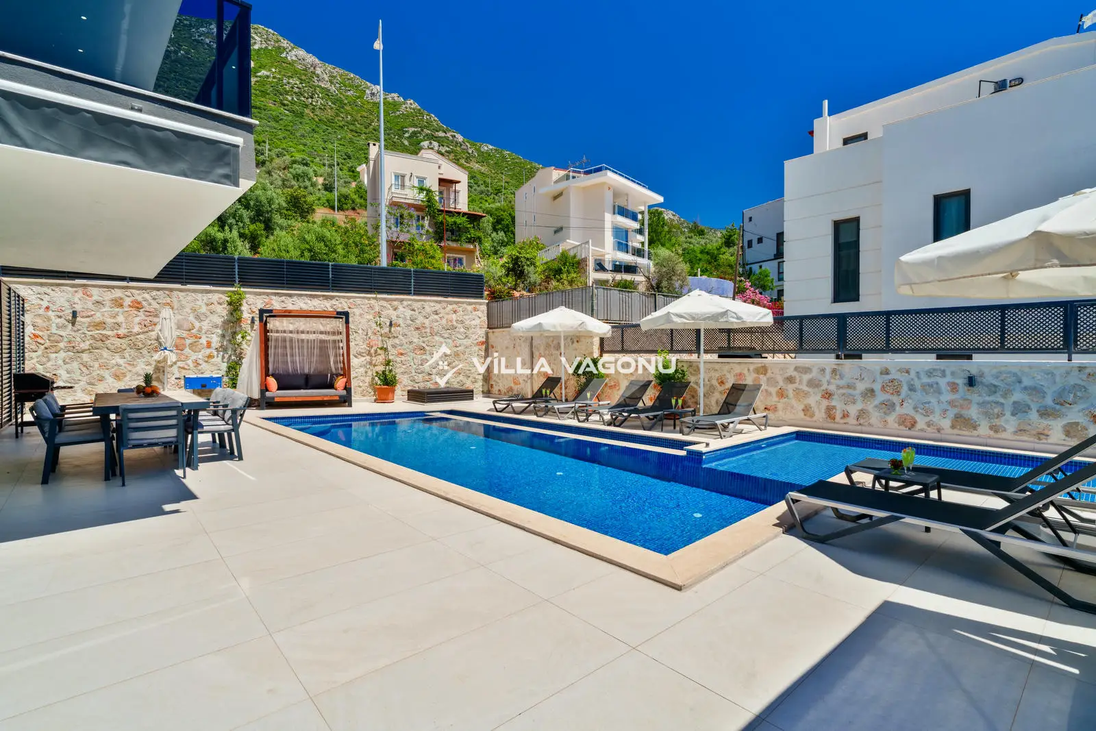 Kalkan, Kızıltaş mevkiinde yer alan 4 yatak odalı, 8 kişilik konaklamama kapasitesine sahip lüks bir villadır. Doğa içerisinde yer alan villamız eşsiz bir deniz manzarasına da sahiptir.