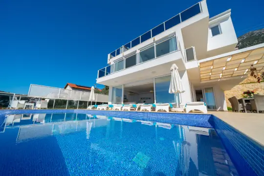 Kalkan, Kızıltaş mevkiinde bulunan, 5 yatak odalı ve 10 kişilik konaklama kapasitesine sahip deniz manzaralı bir villadır.Kalabalık aileler ve kalabalık arkadaş grupları için ideal bir villadır.