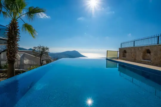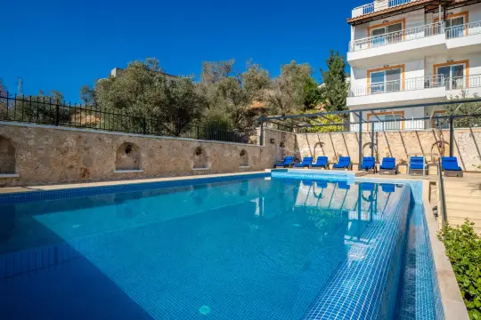 Kalkan Merkez mevkiinde yer alan villa, sizlere huzurlu bir konaklama deneyimi sunuyor. 5 yatak odasıyla 10 kişilik konaklama kapasitesine sahip olan villamız, kalabalık aileler ve çekirdek aileler için ideal bir tercihtir. Ferah iç mekanları ve zarif tasarımı ile göz dolduran villa, doğa ve deniz manzarasına hakimdir.