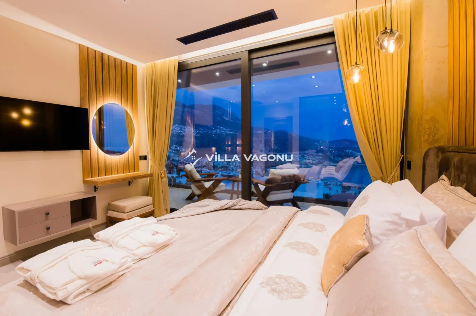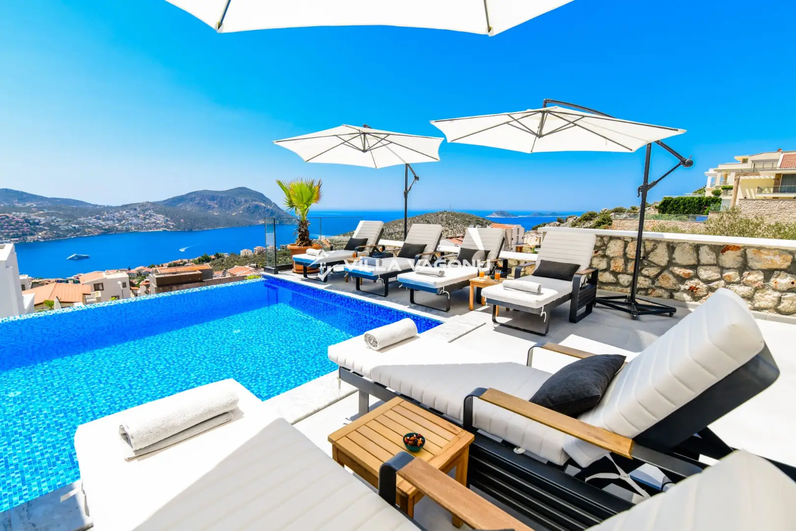 Kalkan Merkez mevkiinde yer alan villa, sizlere huzurlu bir konaklama deneyimi sunuyor. 4 yatak odasıyla 8 kişilik konaklama kapasitesine sahip olan villamız, geniş aileler için ideal bir tercihtir. Ferah iç mekanları ve zarif tasarımı ile göz dolduran villa, doğa manzarasına hakimdir.